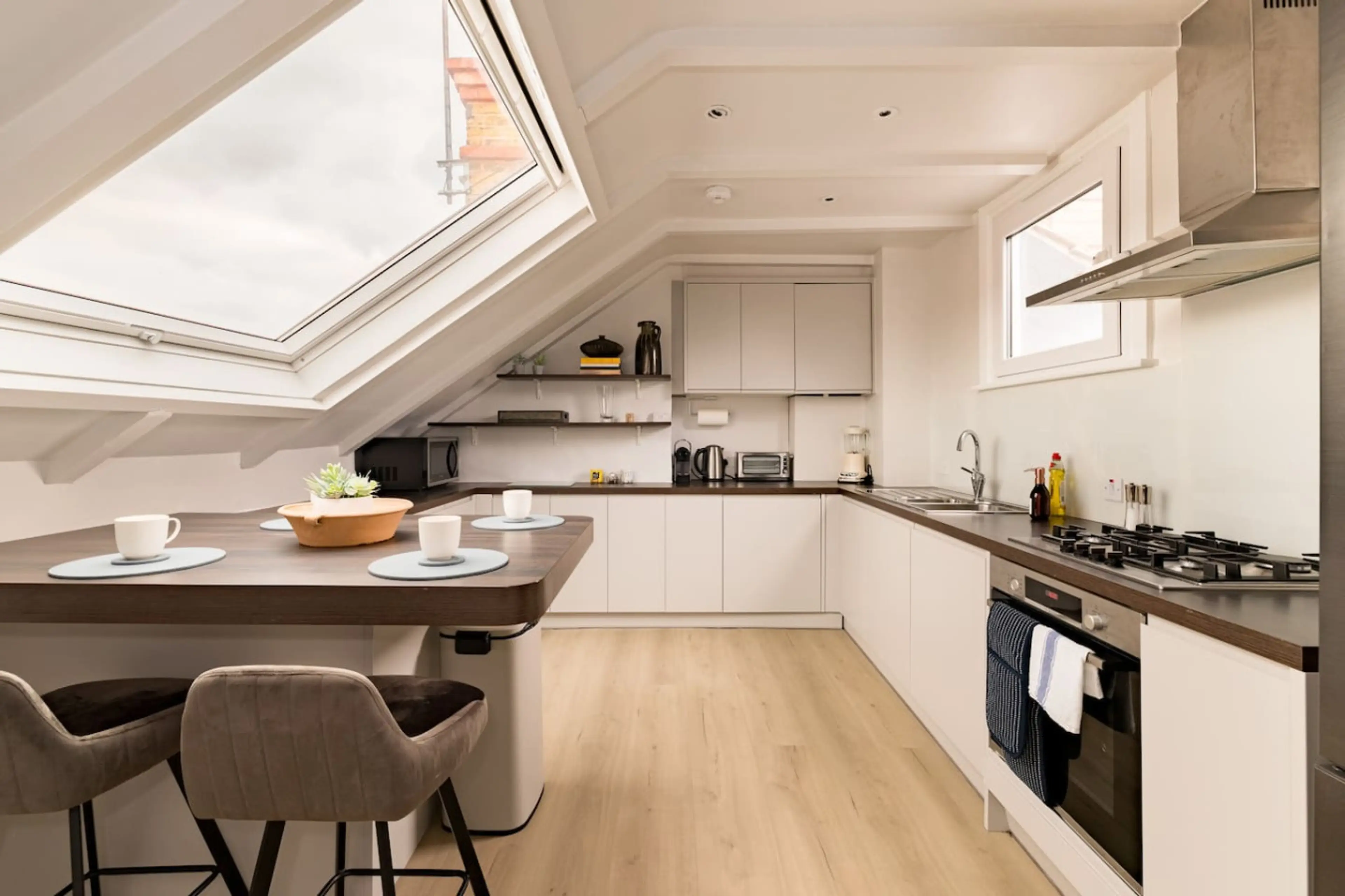 At PenthouseStays nr Battersea, your professionally designed and newly renovated space is expertly tailored to suit your needs, combining natural tones and high-end luxury fixtures & finishes, creating a serene atmosphere that is beautifully complemented by ample natural light from expansive windows...
